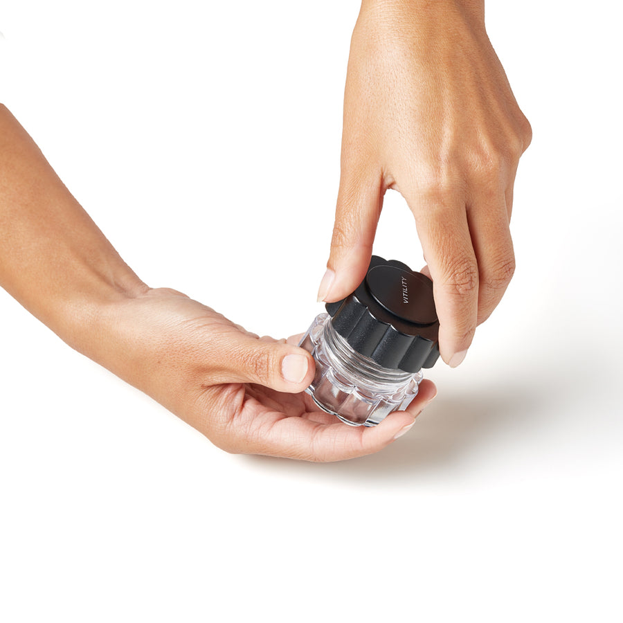 Was die Anwendung besonders angenehm macht: Sie ist wirklich unkompliziert. Keine komplizierte Bedienung, kein lautes Geräusch. Einfach Tablette einlegen, zudrehen und drehen – schon zerbröselt die Tablette zu feinem, gut portionierbarem Pulver. So können Sie morgens am Frühstückstisch, tagsüber am Schreibtisch oder abends in aller Ruhe Ihre Medikamente vorbereiten, ohne großen Aufwand. Viele entscheiden sich für eine Tablettenmühle, weil sie Medikamente angenehmer einnehmen möchten. VITILITY legt dabei Wert auf eine Lösung, die nicht umständlich, sondern einfach und sicher ist.