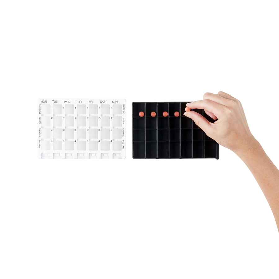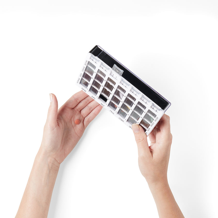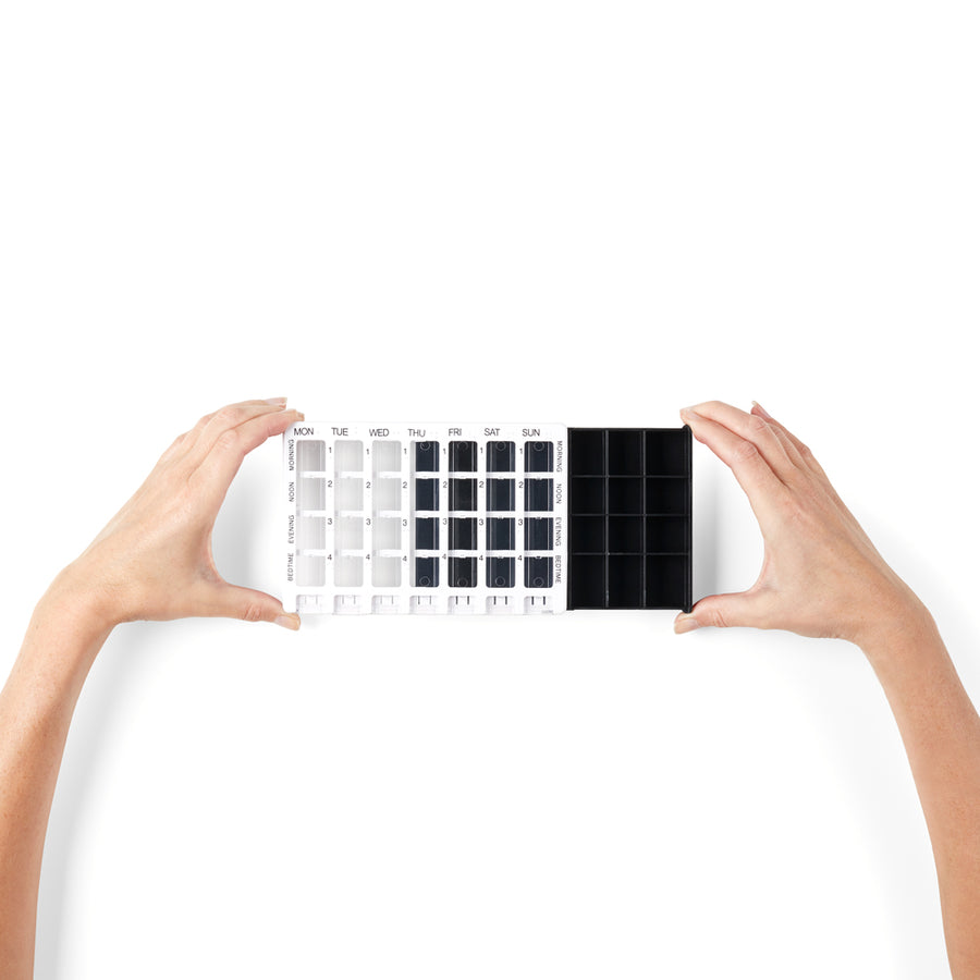 Alltagsgegenstände müssen robust sein. Der Planer besteht aus stabilem Kunststoff, der dafür gemacht ist, täglich geöffnet, transportiert oder von Raum zu Raum mitgenommen zu werden. Im Alltag bleibt selten alles ordentlich: Schubladen werden voll, es wird umgeräumt, Abläufe verschieben sich. Ein verlässlicher Planer sorgt dafür, dass Ihre Medikamente trotzdem sicher verstaut und getrennt bleiben – damit Sie weniger mit Verpackungen jonglieren müssen und mehr den Kopf frei behalten.