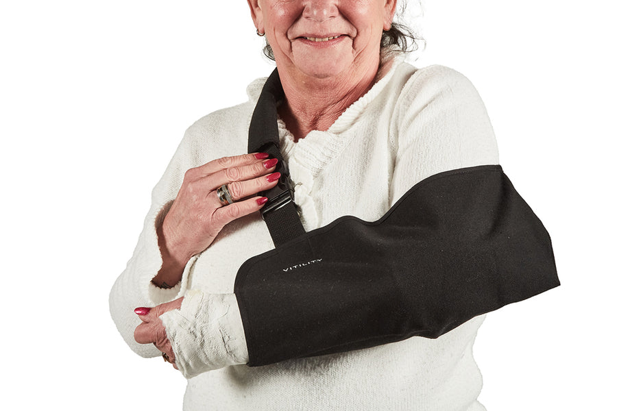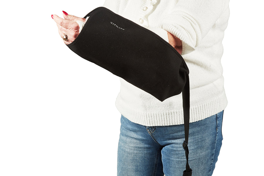 When your arm needs extra support, you still have places to go and people to see. The VITILITY Arm Sling is designed for those real-life days when you want your arm to feel steady and comfortably held, without feeling like your routine has to shrink. This adjustable everyday arm support helps carry the full weight of your arm so your shoulder and neck can relax, making ordinary movement feel calmer and more manageable. What makes an arm sling genuinely useful isn’t just that it holds your arm up—it’s how it feels after an hour, how it sits when you’re walking, and whether you can adjust it quickly when you change clothes or move from indoors to outdoors. The VITILITY Arm Sling focuses on comfort, balance, and simplicity, so it fits into everyday moments instead of taking them over. From quiet mornings at home to errands, appointments, or family time, it offers a reassuring way to support your arm while you continue living your day. A big reason people choose an adjustable arm sling is to reduce that “dragging” sensation that can make your shoulder feel tense. This sling is made to carry the weight for you, helping reduce the pull that can build up across the neck and upper back when your arm is unsupported. The strap runs over your head and rests smoothly across your back, shoulder, and underarm, distributing the load in a way that feels natural rather than awkward. That balanced carry can make a noticeable difference in how you hold yourself—less hunching, less bracing, and more of a “settled” posture that feels easier to maintain. Because comfort is personal, the VITILITY Arm Sling keeps things straightforward with a universal size and a strap that adjusts quickly. You don’t need to wrestle with complicated fastenings or spend a long time getting it “just right.” You can fine-tune the length in small steps until your arm feels supported and your shoulders feel level. It’s also easy to readjust throughout the day, which is especially helpful if you switch from a T-shirt to a sweater, add a coat, or simply want a slightly different position when you sit down versus when you walk around. This arm sling is designed to support either arm, left or right, with the same stable feel. If you’ve ever tried an arm support that seemed to be “made” for one side and awkward on the other, you’ll appreciate how adaptable this one is. You simply place the sling on the arm you want supported, guide the strap over your head so it rests on the opposite shoulder, and adjust to your preferred height. That flexibility is useful in day-to-day life, especially if your needs change over time or if different activities call for slightly different comfort. Getting the fit right is often the first question shoppers ask, and it’s a smart one—because the right height affects comfort immediately. A good fit usually means your elbow sits comfortably toward the back of the sling, and your forearm feels level with, or slightly raised above, your elbow. That position encourages the sling to carry the weight effectively. If your wrist feels like it’s dipping or not supported, you can shorten the strap a little. If your shoulder feels pulled upward or the strap feels too tight, lengthen it slightly. Then take a few steps and notice your posture. When the strap lies flat and your arm feels secure without pressure points, you’ve found your sweet spot. Another everyday concern is whether to wear an arm sling over or under clothing. There isn’t one correct answer—only what feels best for your comfort and your plans. Many people wear the VITILITY Arm Sling over light clothing because it’s easy to adjust on the go. Others prefer a soft layer underneath to reduce friction against the skin, especially if they’ll be wearing it for longer periods. If you’re adding outerwear, you can put the sling on first, adjust it, and then slip on your coat. The simple strap makes it easy to re-check the fit once everything is layered. The VITILITY Arm Sling also suits the way people actually move through a day. You may be standing at the counter, sitting at a table, walking from the car, or resting on the sofa. A supportive sling shouldn’t feel like it’s constantly in the way; it should feel like a steady companion that lets you focus on what you’re doing. This sling is meant to feel intuitive from the first wear: put it on, adjust, and get back to your routine. It’s supportive without being fussy, and reassuring without being restrictive. If you’re wondering how long you can wear an arm sling during the day, it often comes down to comfort and your own routine. The VITILITY Arm Sling is made for everyday use—so it can be worn while you move around, take a walk, sit and read, or go out for essentials. Many people find it helpful to take short breaks when comfortable, stretch gently, and check that the strap still sits flat and comfortable. If you’ve been given specific guidance by a healthcare professional, it’s best to follow that advice, but from a day-to-day standpoint the goal is simple: supported, steady, and free from unnecessary strain. Because this is an item you may reach for frequently, care matters too. Keeping your sling fresh doesn’t need to be complicated. Regular light cleaning—brushing away dust, spot-cleaning with a mild detergent and a damp cloth, and letting it air dry—helps it stay comfortable and ready for daily wear. Avoid harsh chemicals and high heat, which can affect materials and strap performance. It’s also a good habit to occasionally check the strap and stitching so everything continues to feel secure. For the most accurate instructions, always follow any care symbols on the packaging. The overall look is another subtle benefit. The VITILITY Arm Sling is designed to blend into everyday life with a clean, modern feel—practical support that doesn’t call attention to itself. It’s the kind of product that supports independence and dignity: so