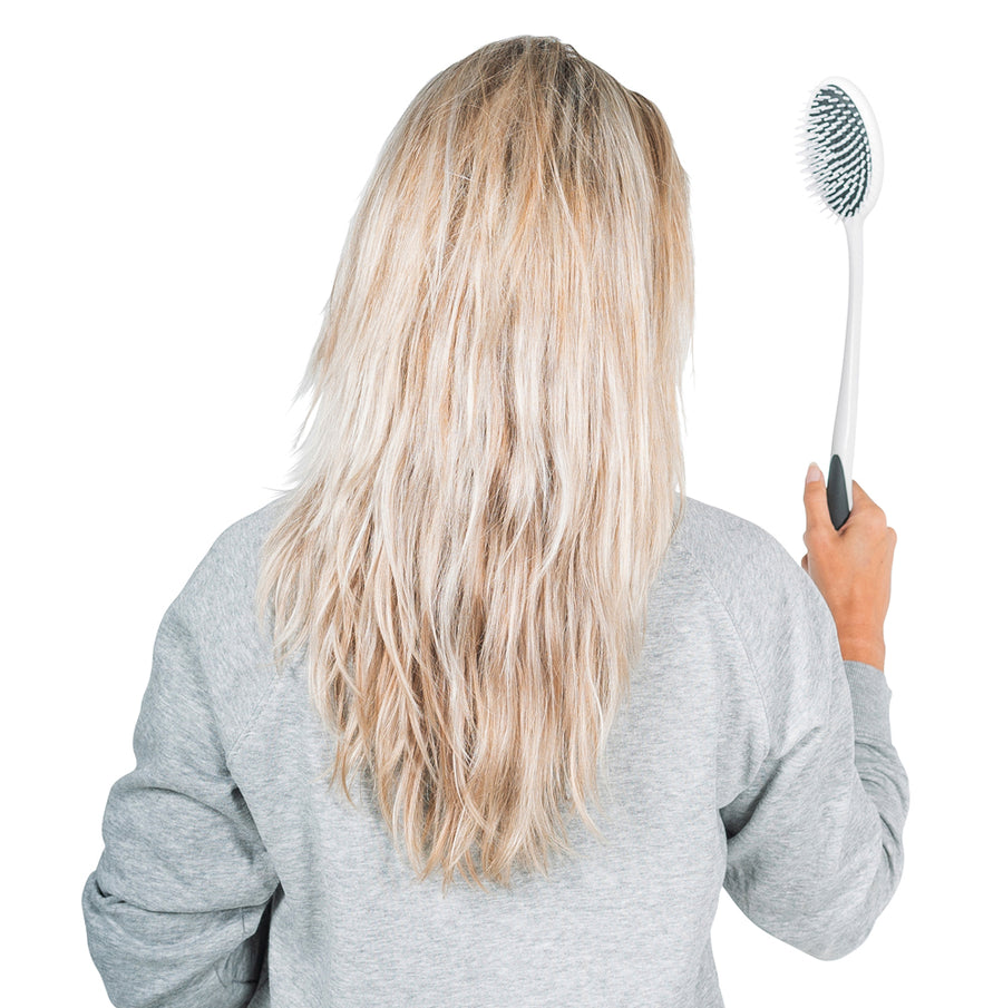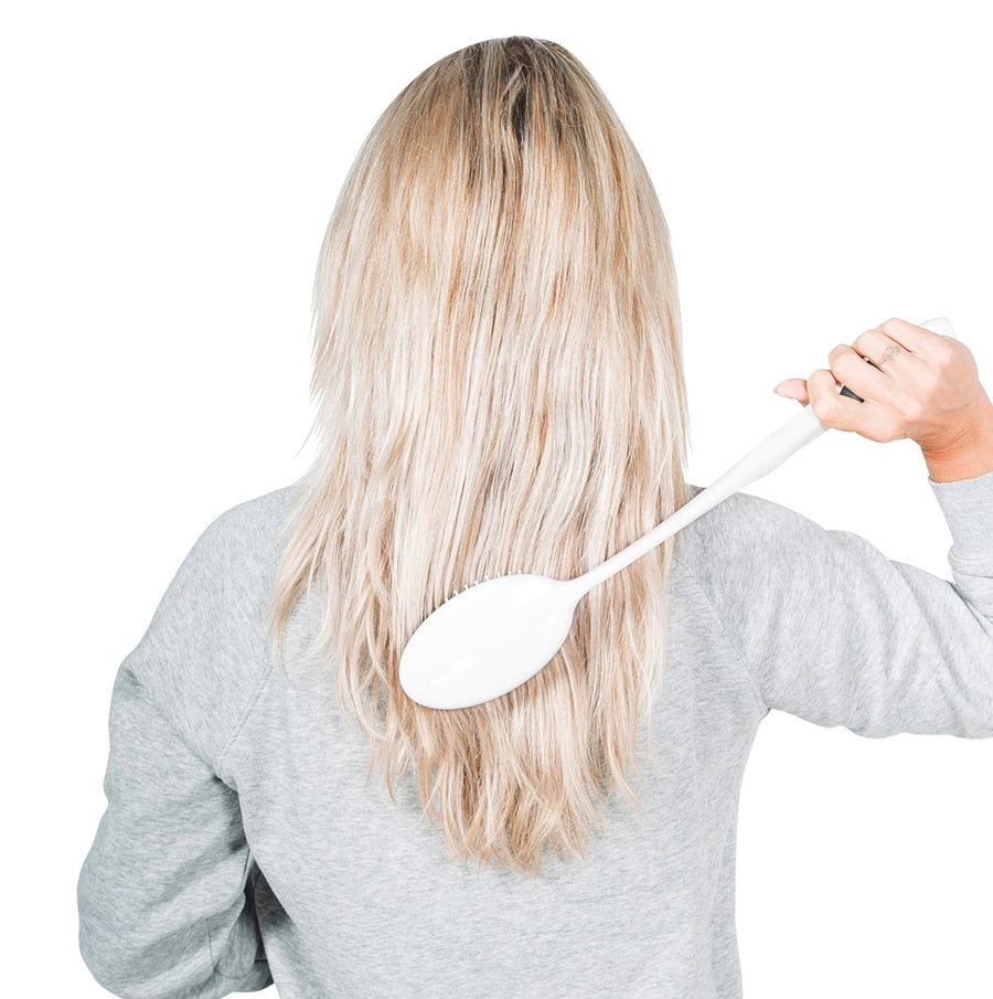 This brush is made for anyone who wants comfortable reach and calm control — whether you’re easing stiff shoulders, protecting healing joints, or simply giving your body a break. The extended handle adds leverage that can help with thicker or curlier hair, enabling gentler, more controlled strokes. Start slowly and work in sections, especially on dense or textured hair. If you prefer, you can add a light detangling spray. The goal is easy, confident grooming that works with your routine and respects your body.