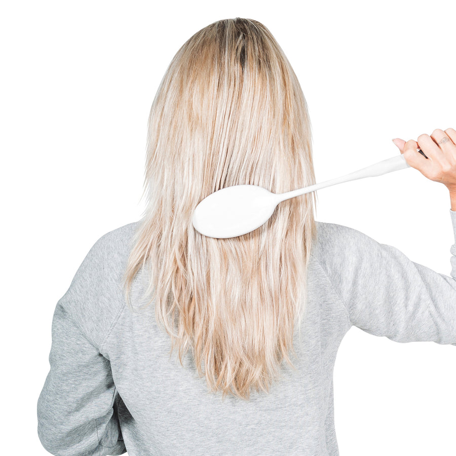 We design tools that work the way you do — simply, intuitively, and without drama. Your brush arrives ready to use, with clear guidance on the packaging and an easy overview of the steps below. Hold the handle wherever it feels natural; the grippy surface supports your hand so you can keep a light, relaxed hold. Brush slowly at first, letting your arm and shoulder stay comfortable as the longer handle does the reaching. For extra reassurance, you can refer to the quick how-to video referenced on the packaging.