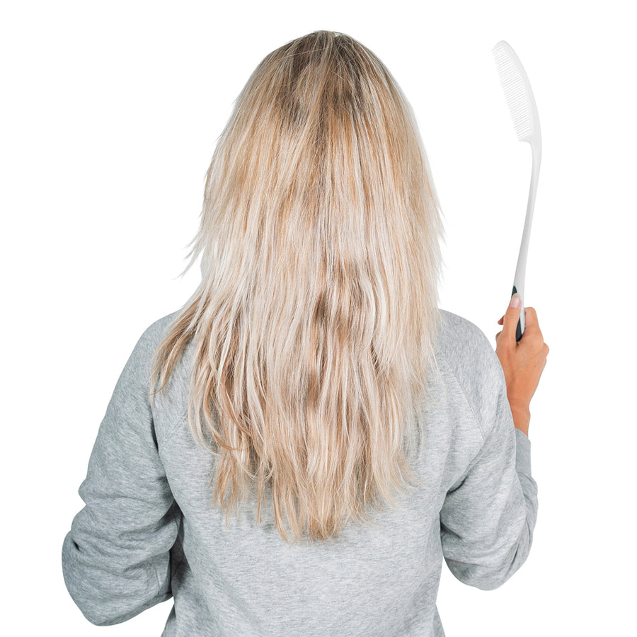 Everyday hair care shouldn’t ask you to bend, twist, or “work around” stiff shoulders just to reach the back of your head. The VITILITY Long-Handled Comb is designed for exactly that everyday moment: when you want your hair to feel neat and comfortable, but a standard comb feels too short, too fiddly, or simply awkward to use. With its extended 44.5 cm length and an ergonomic, non-slip handle, this easy reach hair care tool helps you comb, smooth, and section your hair with a more relaxed posture and steadier control. What makes a long-handled comb so useful is how quickly it changes the feel of your routine. Instead of lifting your elbow high, tilting your neck, or reaching behind your head at an uncomfortable angle, you can bring the comb where it needs to go with less stretching. The added length gives you gentle reach to the top and back of your head—areas that can be frustrating with a regular comb, especially when your shoulders feel tight, your range of motion is limited, or you simply prefer a calmer, more comfortable way to style your hair. It’s a simple change, but it can make daily grooming feel less like a task and more like normal self-care again. The handle is shaped to support a secure, confident grip. Many people find thin, short handles harder to hold, especially when hands are damp after washing, when you’re applying styling products, or when you don’t want to squeeze tightly for long periods. The VITILITY Long-Handled Comb uses a textured, non-slip surface to help your hand stay steady without overgripping. That steadiness matters: it helps you guide the comb smoothly through your hair, maintain control at the ends, and move around your scalp with a lighter touch. The result is a more comfortable experience, with less hand fatigue and fewer little slips that can make grooming feel rushed. Comfort isn’t only about your arm and shoulder—your hair and scalp deserve it too. This ergonomic comb is made to glide with balanced control, helping you work through lengths without feeling like you have to tug. Whether you’re tidying your style in the morning, neatening the back before heading out, or combing after a shower, the long reach lets you keep movements gentle and predictable. Many people find that when they can reach more easily, they naturally use less force. That can be especially reassuring if your scalp is feeling sensitive or if you simply prefer a slower, more careful grooming routine. Because hair is personal, the VITILITY easy reach hair care comb is meant to fit a variety of hair types and daily habits. It can be used on short hair to smooth and shape without awkward wrist angles. It can support longer hair by making it easier to reach the crown and the back sections without repeatedly repositioning your arm. For thicker hair or wavy textures, it helps with sectioning so you can work a little at a time—bringing the comb to the area you want, rather than twisting yourself to get there. If you have tighter curls or very dense hair, you can still use it comfortably by taking smaller sections and moving slowly, starting near the ends and working upward in gentle strokes. The goal is not speed; it’s control, comfort, and a routine you can repeat day after day without it feeling strenuous. This is also a practical choice if you style your hair while seated. Many people prefer to do grooming at a vanity, at the edge of the bed, or in a comfortable chair. A long-handled comb makes that easier because you don’t need to stand and crane around the mirror to reach the back. You can sit securely, keep your shoulders more relaxed, and still get to every strand. It’s a helpful tool for independent grooming when you want to maintain your own routine, and it’s equally helpful when you want a tool that simply feels nicer to use. Caregivers often appreciate the design as well. When you’re helping someone else with hair care, posture matters—for both of you. A standard comb can make a caregiver lean in, reach over, or lift their arms for longer than is comfortable. The VITILITY Long-Handled Comb provides extra reach so grooming can be done with less bending and less awkward positioning. It supports a calmer, more respectful routine: you can stand or sit in a stable spot, work in small sections, and keep movements light and predictable. For the person receiving help, that can feel more comfortable and more dignified—because the grooming feels gentle and unhurried. In real life, a tool only earns its place in your bathroom if it’s easy to live with. This long-handled comb arrives ready to use—no assembly, no complicated parts to manage. It’s lightweight enough to maneuver comfortably, yet long enough to provide the leverage that makes the difference. It stores neatly in a drawer or cabinet, and it’s easy to carry between rooms or to different care settings when needed. It’s also simple to clean: rinse under warm water with mild soap, wipe with a soft cloth, and let it air dry fully before putting it away. If you use styling products, a quick wash keeps the comb feeling fresh and ready for the next use. Avoid harsh chemicals or abrasive cleaners; they’re unnecessary for everyday maintenance and can be rough on the surface. If you’re wondering whether this is “only” for people with limited mobility, the answer is no. The VITILITY Long-Handled Comb is for anyone who wants an easier reach hair care routine—whether that means easing shoulder strain, reducing awkward angles, or simply enjoying better control while combing. It’s a smart addition to a guest bathroom, a practical option for travel between rooms, and a reassuring everyday tool if you know certain movements tend to feel stiff first thing in the morning or after a long day. A few common questions, answered plainly: Is it easier than a regular comb? Yes—mainly because the 44.5 cm length brings the back and top of your head within easier range, and the non-slip handle hel