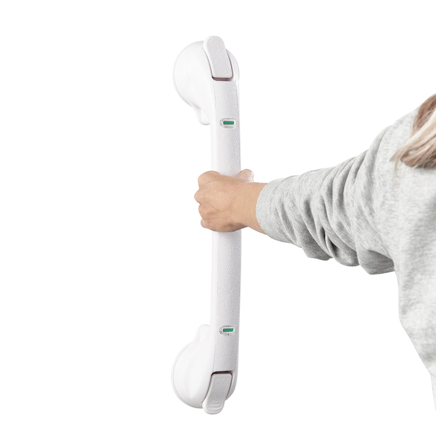 Common questions, answered: Can you use it to support full body weight? No—this suction grab bar is intended for balance and stability during everyday movements, not for lifting or full weight-bearing. Where does it stick best? Smooth, non-porous surfaces like glazed tile, glass, and acrylic offer the strongest hold. Can it be moved and repositioned? Yes, that’s the point—attach it when needed, remove it when done, and reposition as your routine or layout changes. And how do you know it’s secure? Lock the vacuum handles and always test the hold with a firm pull before each use.